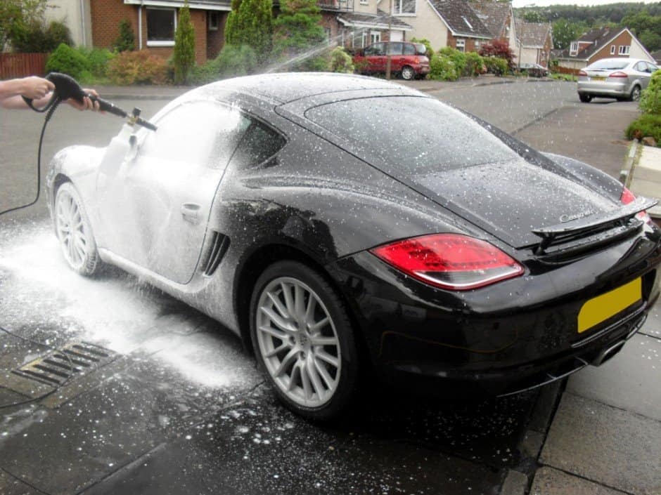 The exterior should be washed using either a microfibre wash mitt or lambs mitt. This reduces the causes of scratching, known as swirls. The vehicle should then be rinsed and hand dried using a large microfibre cloth.